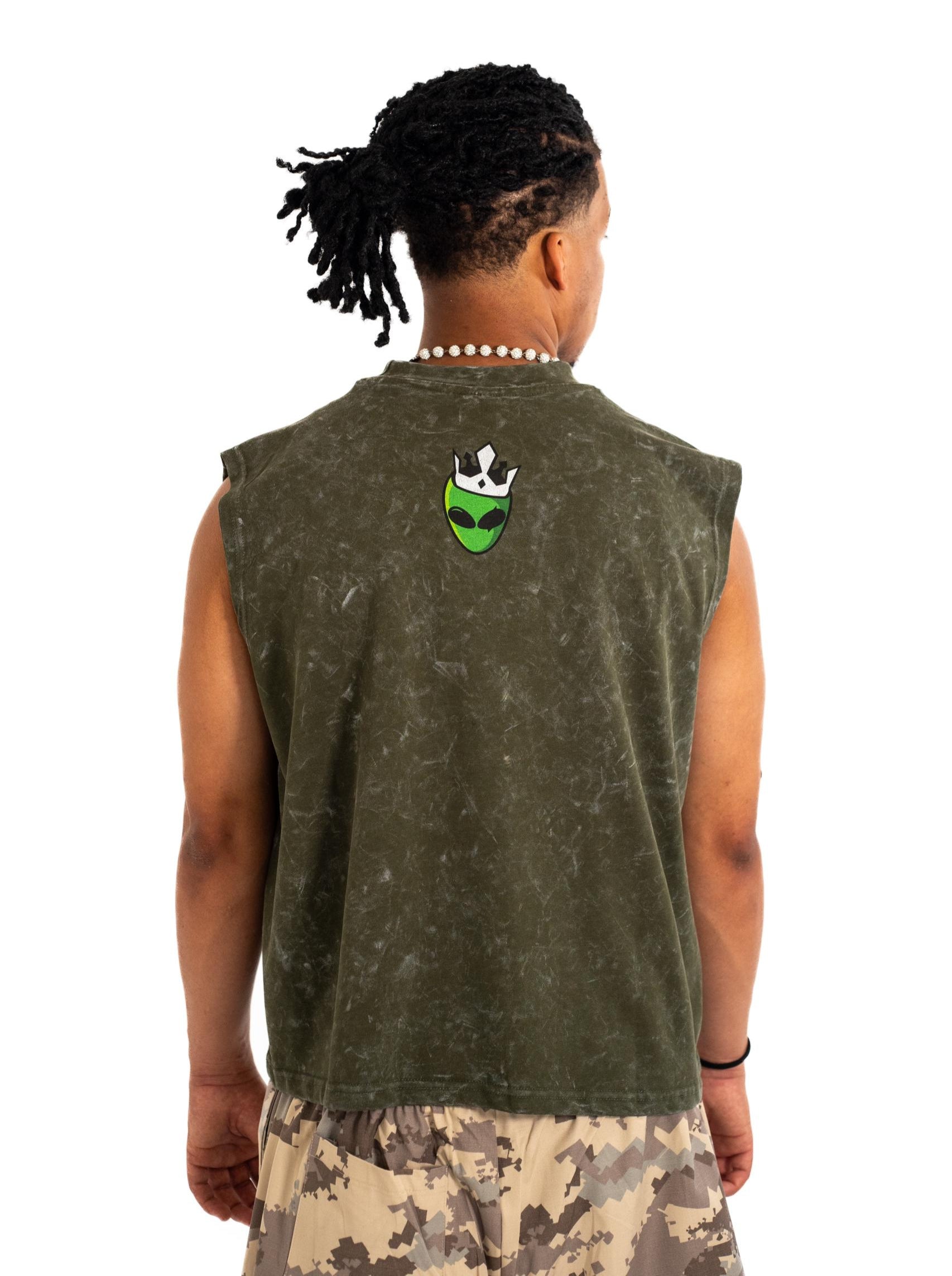 The SpaceRocket Green Sleeveless tee brings a burst of interstellar energy to your wardrobe. With its vibrant green tone and signature alien spaceship graphic, this piece is all about bold expression and laid-back comfort—perfect for turning heads on the streets or in orbit.